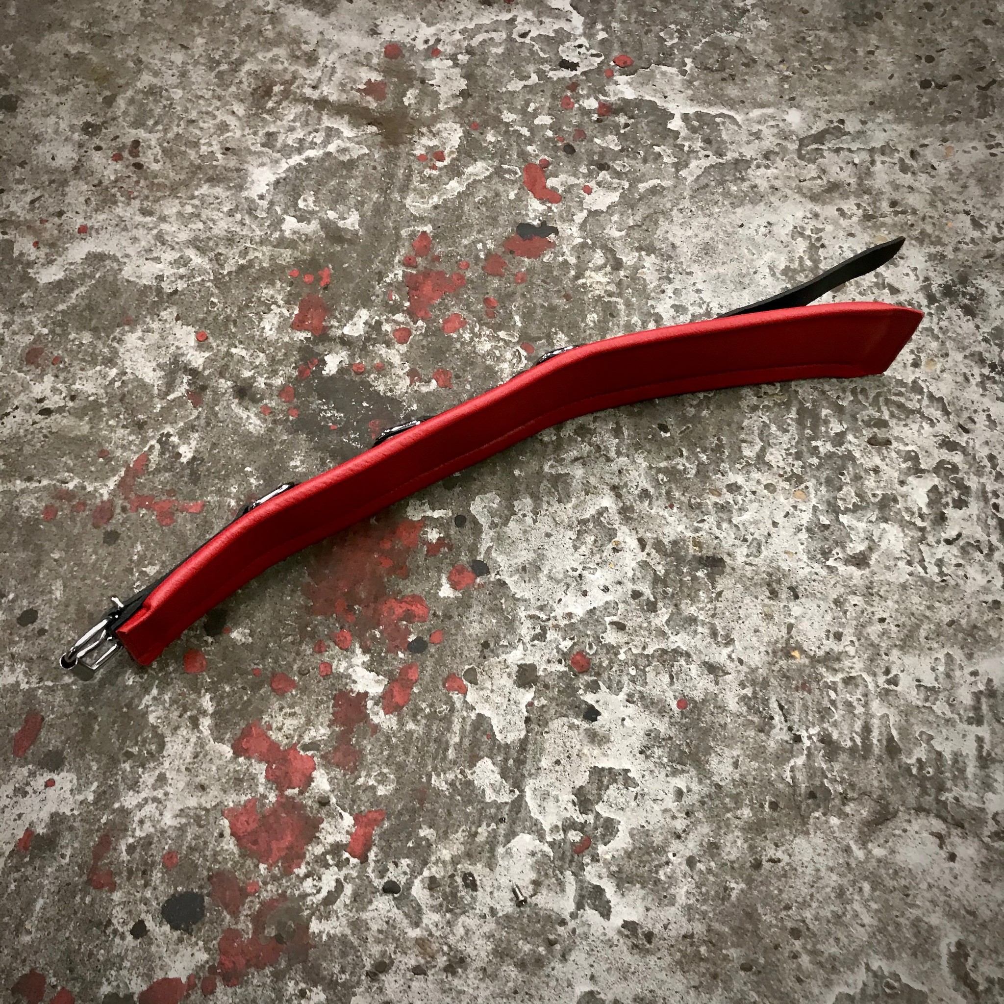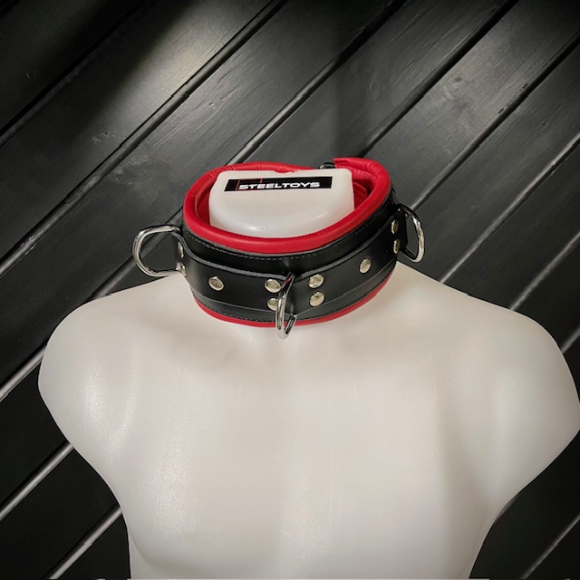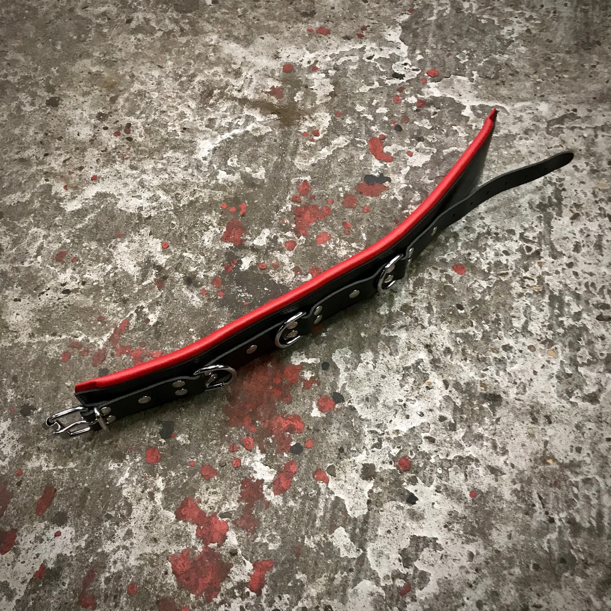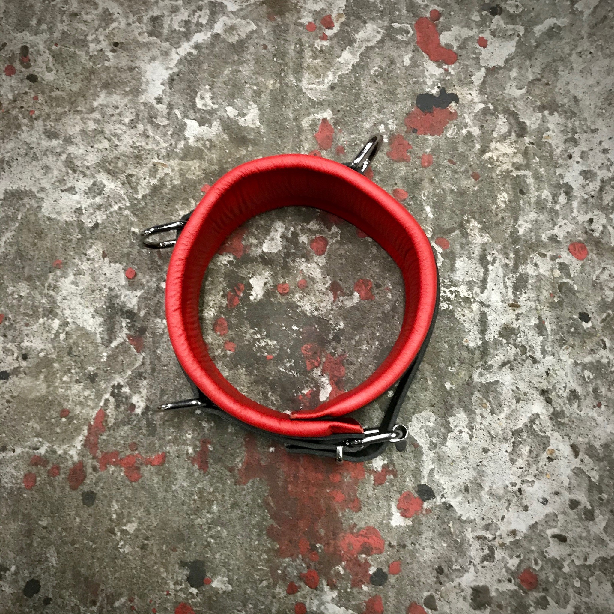 Leather Neck Cuff 8 cm. Black + Red Piping