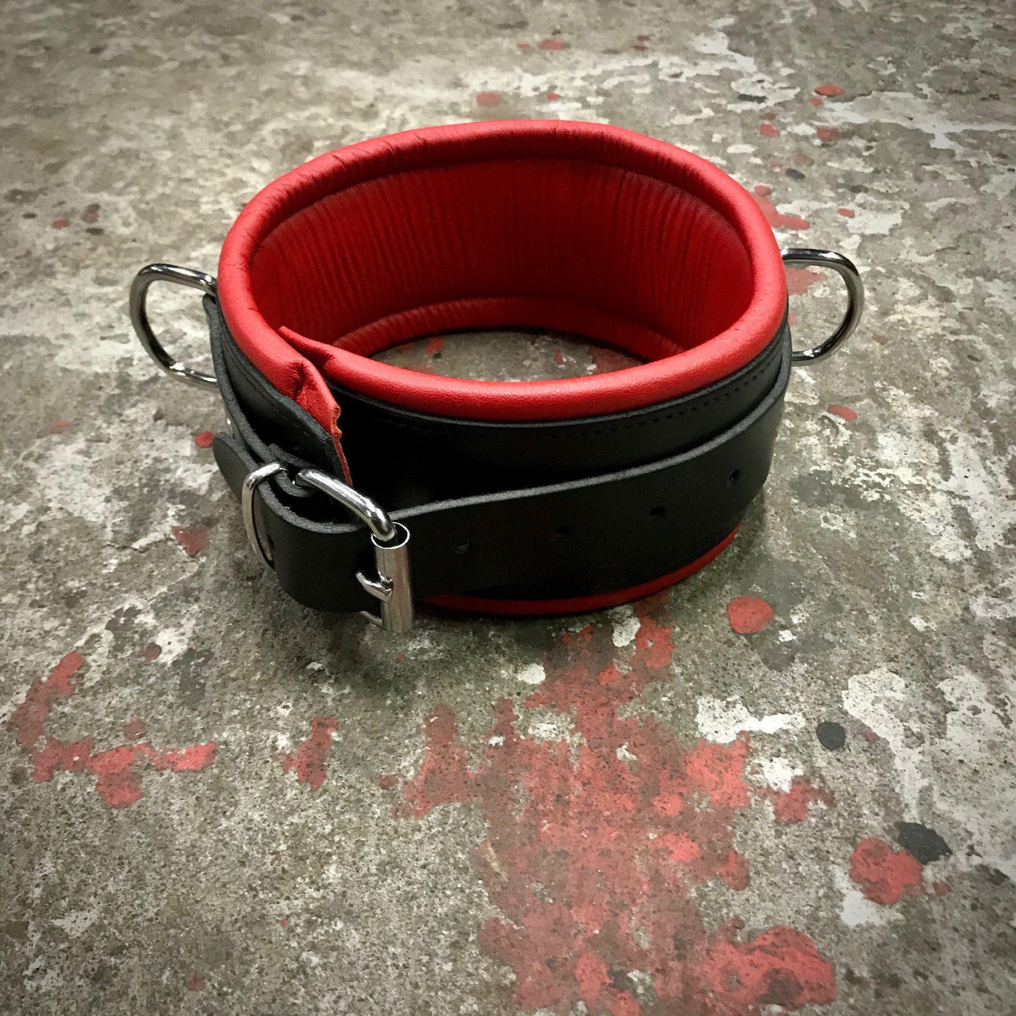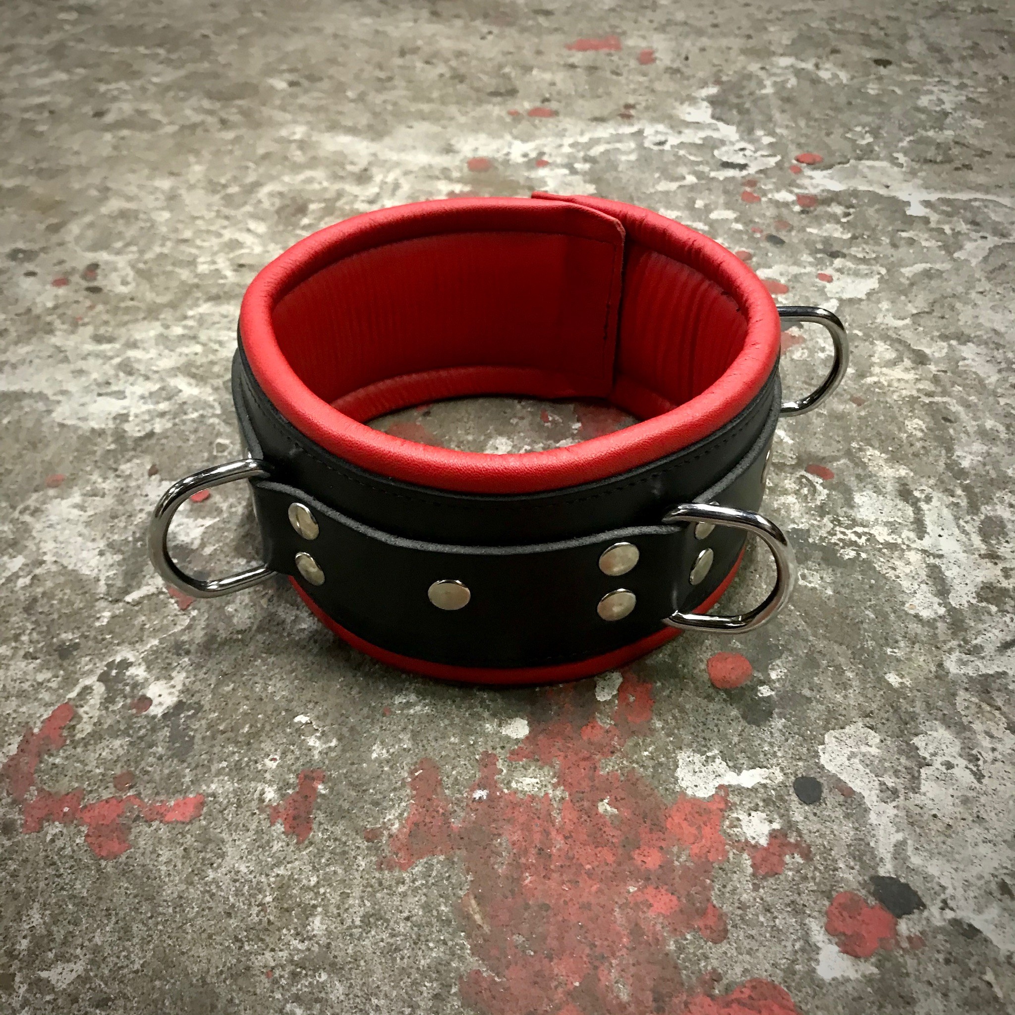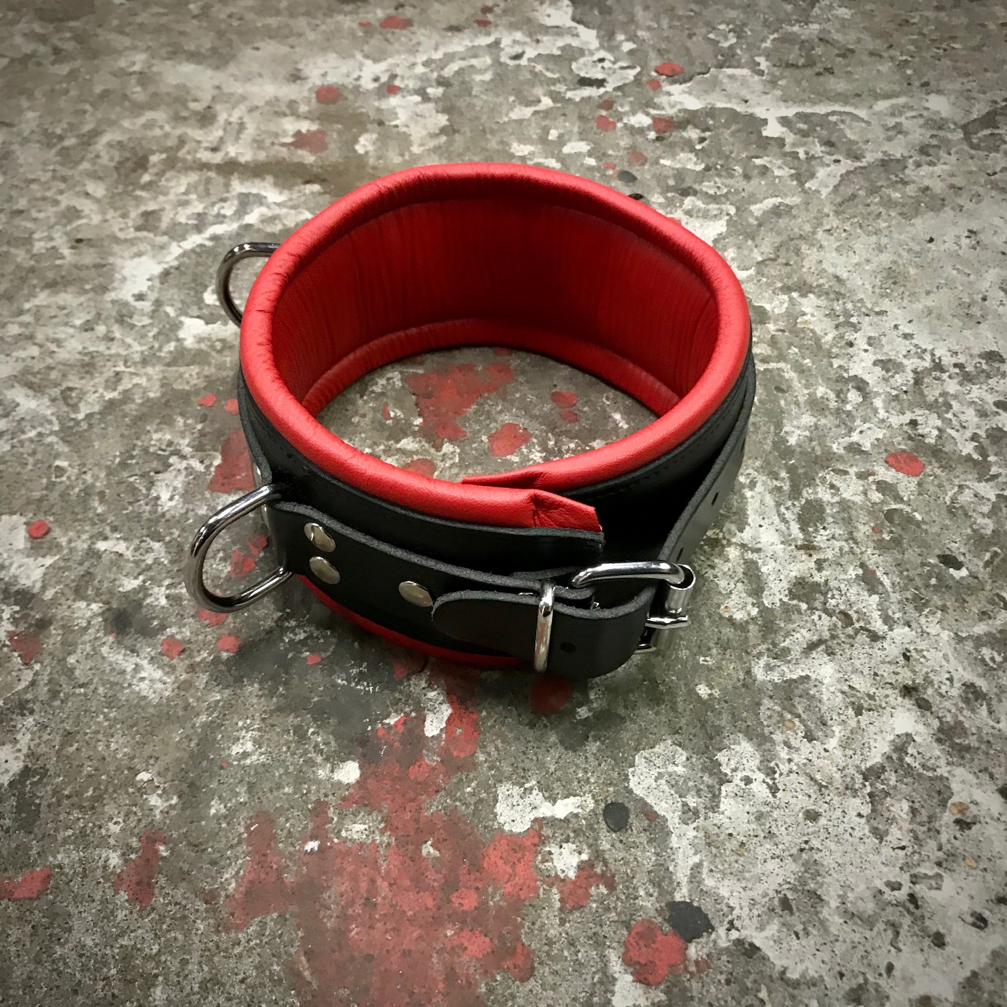 Leather Neck Cuff 8 cm. Black + Red Piping