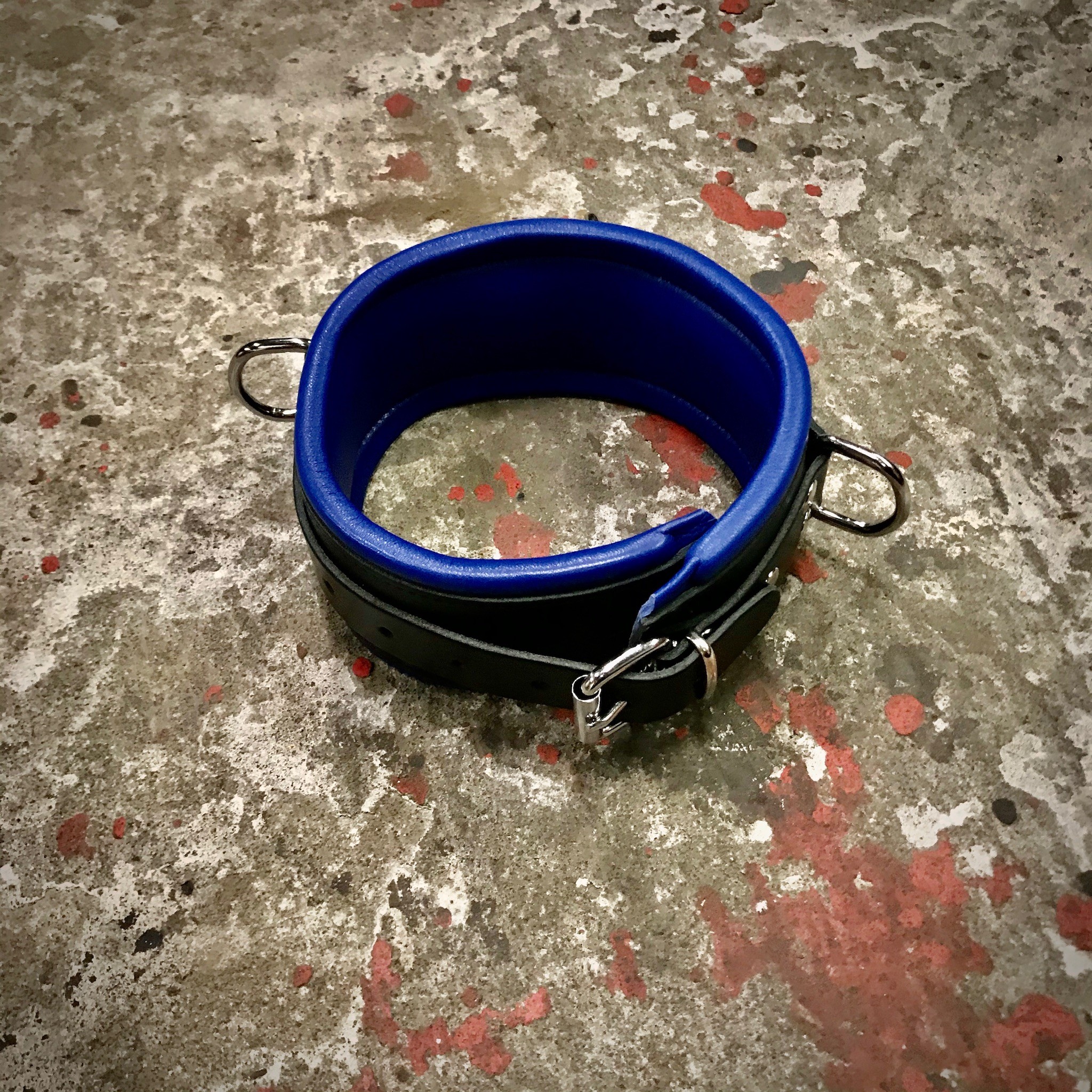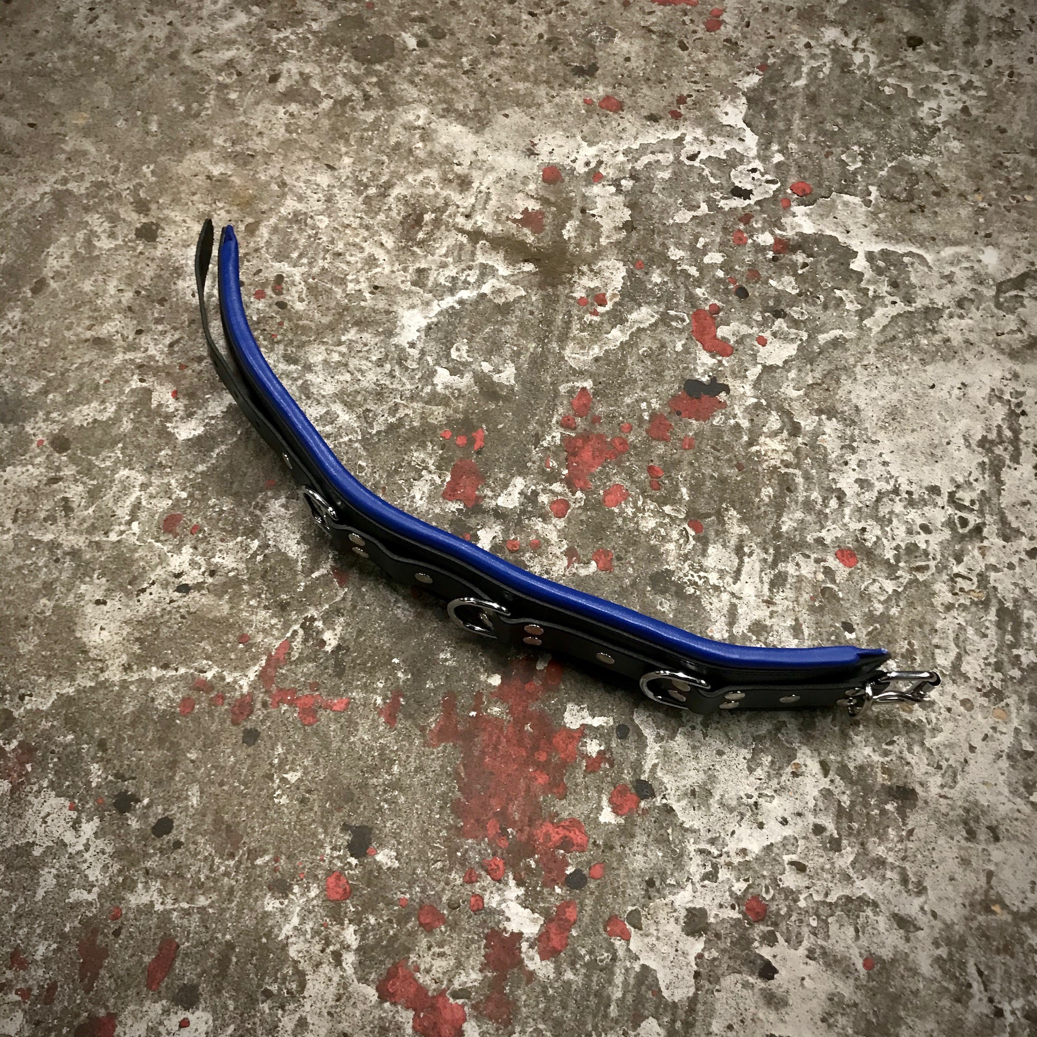 Lederen Hals-Boei 8 cm. Zwart + Blauwe bies