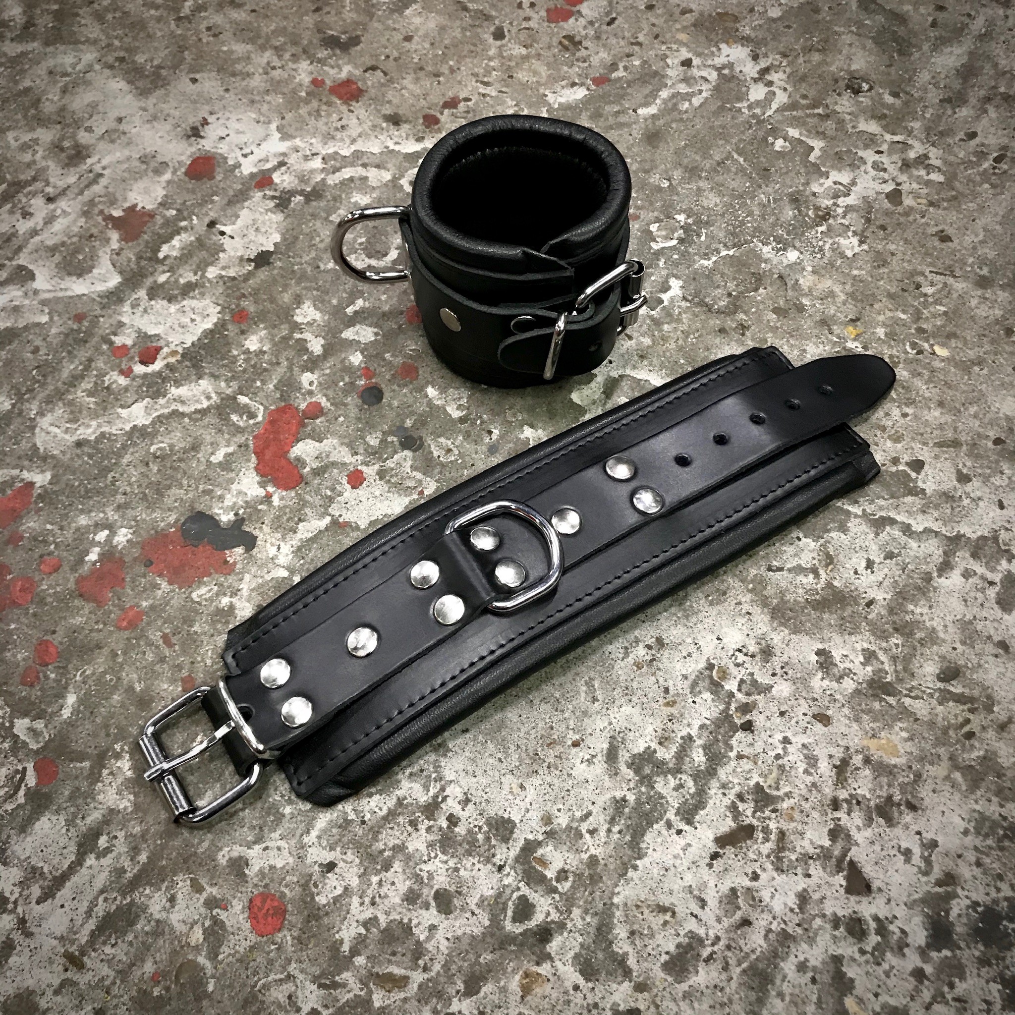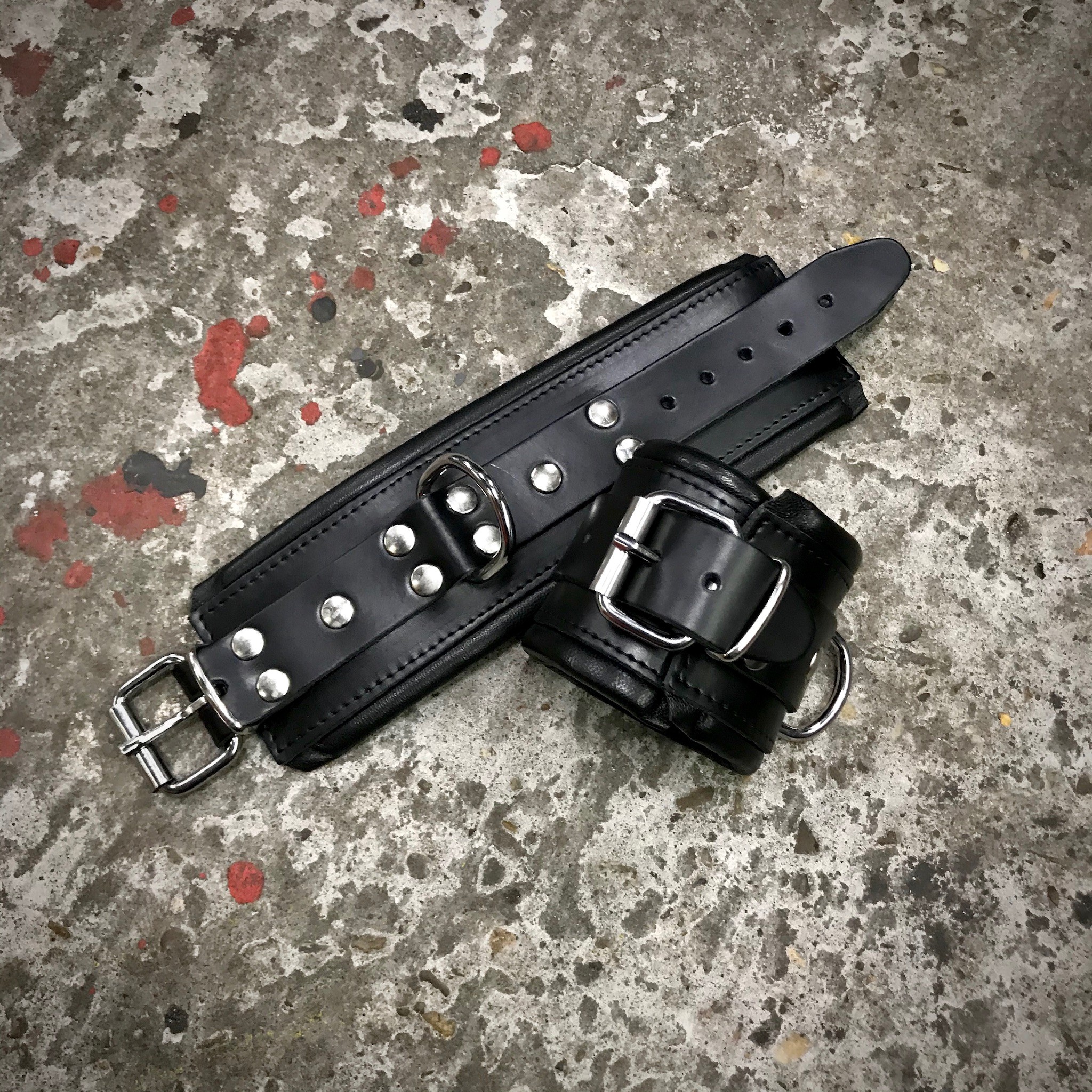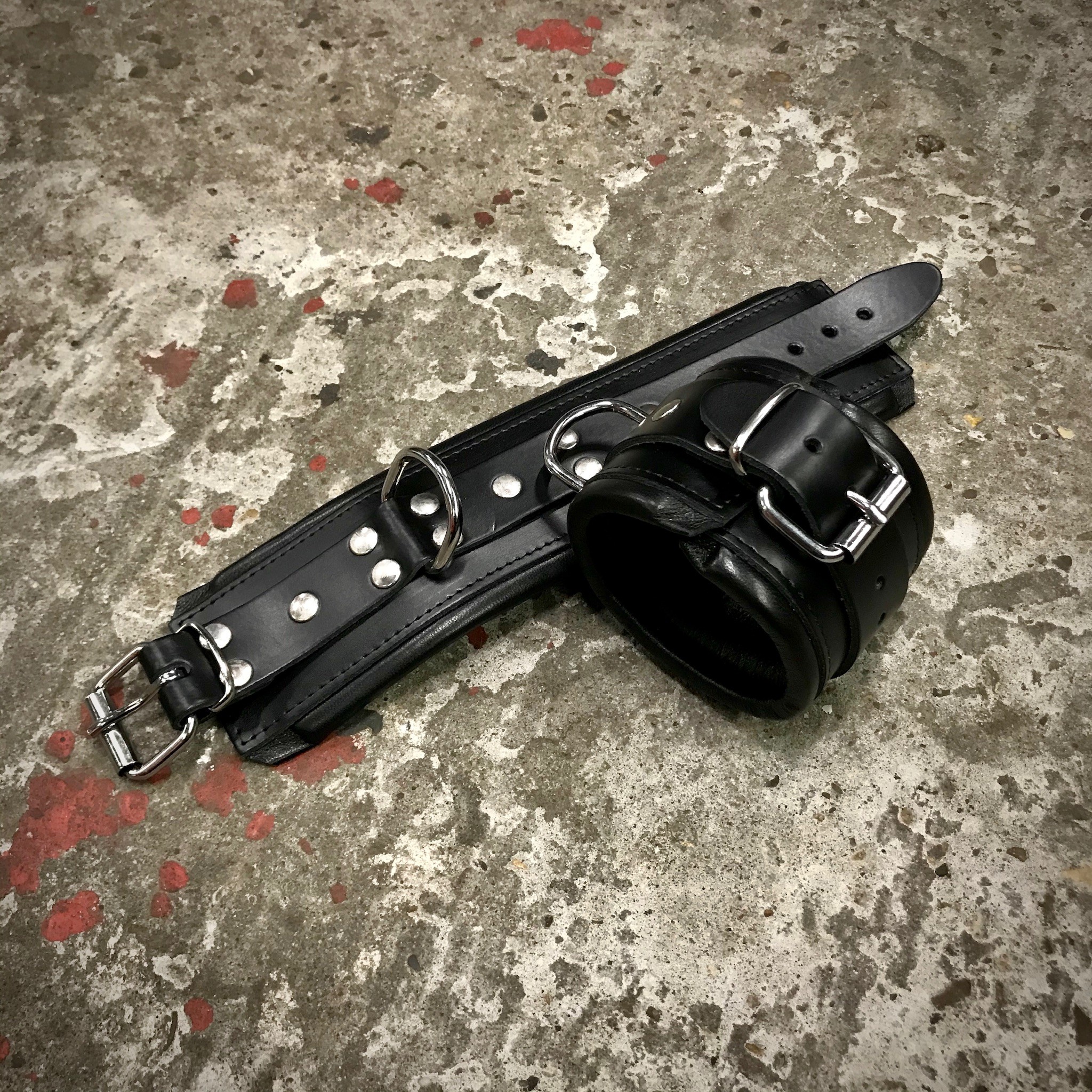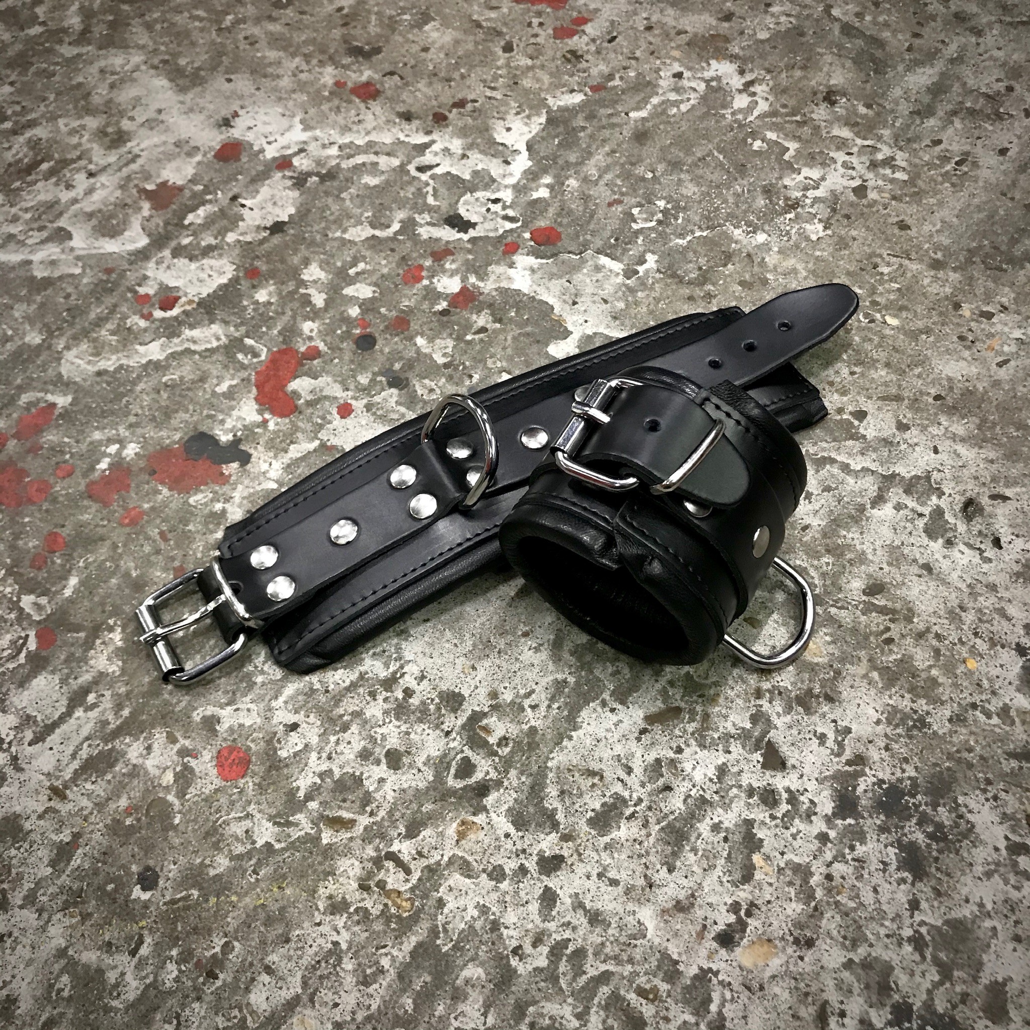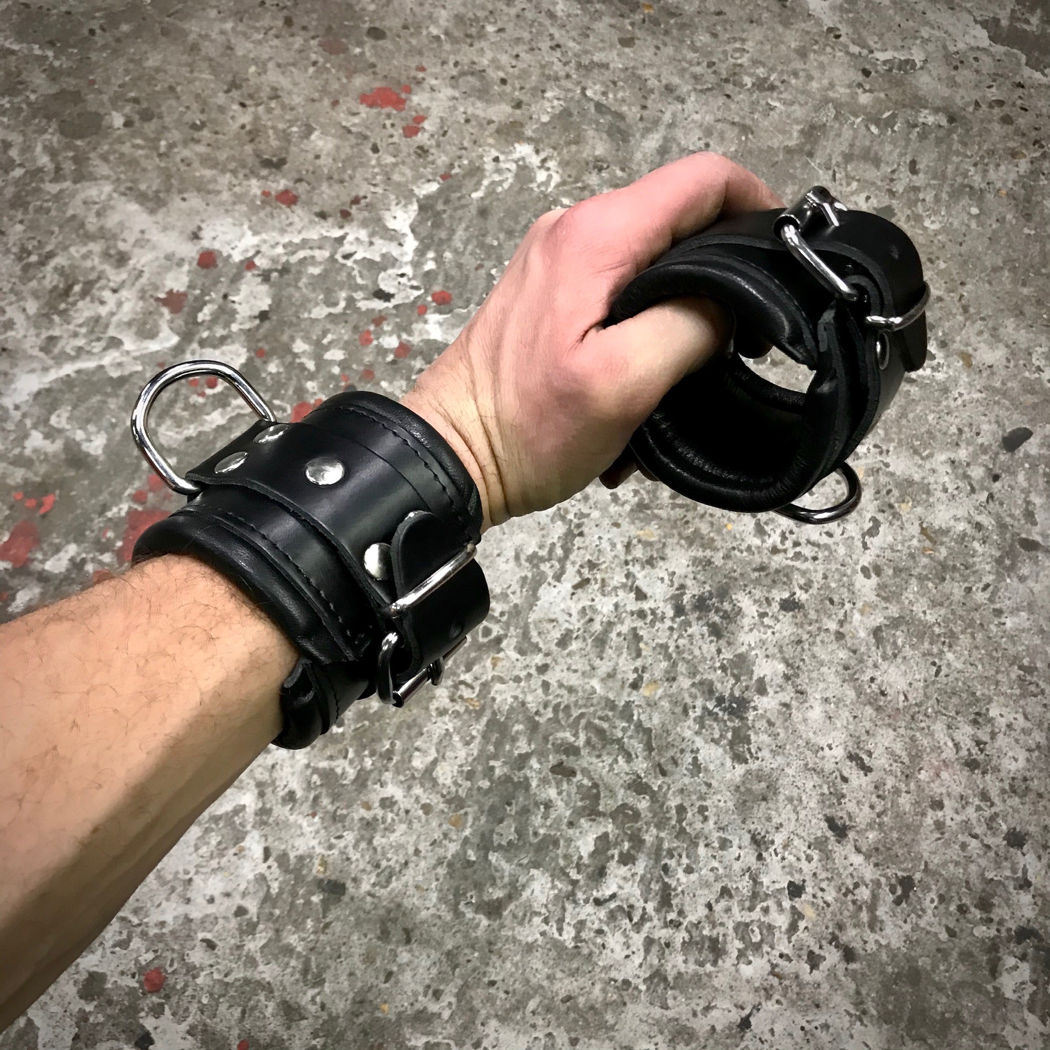 Lederen Pols-Boeien 8 cm. Zwart + Zwarte bies, Per 2 st.