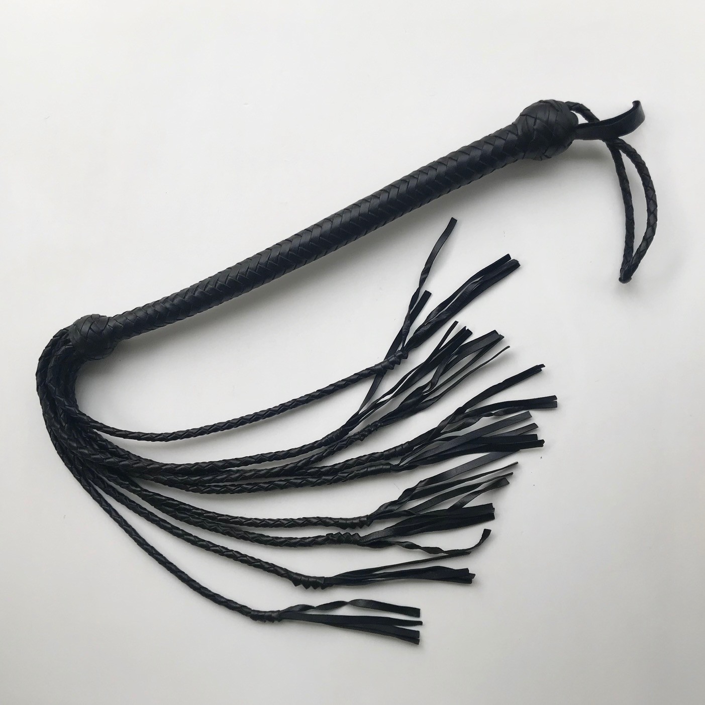 Lederen zweep geweven strengen. Totale lengte 95cm.